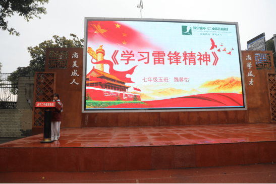 七年級5班魏馨怡同學作了題為《學習雷鋒精神》的演講。她倡議作為新時代青年,我們要將雷鋒精神融入生活,從自身做起,從小事做起,以雷鋒為榜樣,用實際行動詮釋雷鋒精神、傳承雷鋒精神。