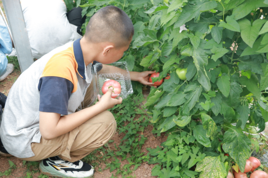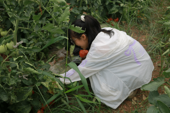 隨后,實(shí)踐環(huán)節(jié)將本次活動(dòng)推向高潮。在講解員的指導(dǎo)下,同學(xué)們親手采摘了新鮮的粉果番茄、脆嫩的生菜和飽滿的圓白菜。他們小心翼翼地采摘成熟的蔬菜,臉上洋溢著收獲的喜悅。許多同學(xué)表示,這是他們第一次親手采摘,真切感悟到了“一分耕耘一分收獲”的道理。