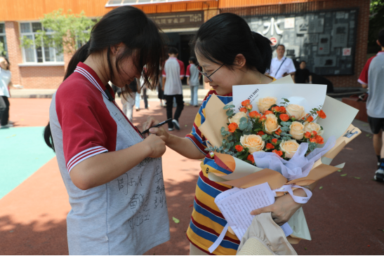典禮最后,學(xué)生代表手捧鮮花奔向恩師。一個(gè)擁抱、一聲“謝謝您”,讓三尺講臺(tái)的堅(jiān)守化為永恒感動(dòng)。??