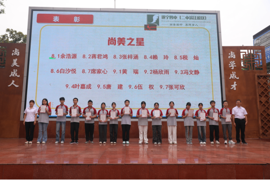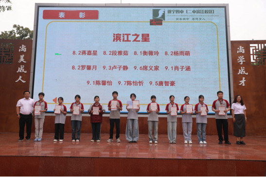典禮對(duì)上一學(xué)年在品德、學(xué)業(yè)、藝體等方面表現(xiàn)突出的“優(yōu)秀學(xué)生干部”“尚進(jìn)之星”“尚美之星”“尚學(xué)之星”“濱江之星”等優(yōu)秀學(xué)生代表進(jìn)行隆重表彰。獲獎(jiǎng)同學(xué)依次上臺(tái)領(lǐng)獎(jiǎng),他們的專(zhuān)注、勤奮與擔(dān)當(dāng)風(fēng)采贏得全場(chǎng)熱烈掌聲,為全體同學(xué)樹(shù)立了“追逐光,成為光,散發(fā)光”的身邊榜樣。