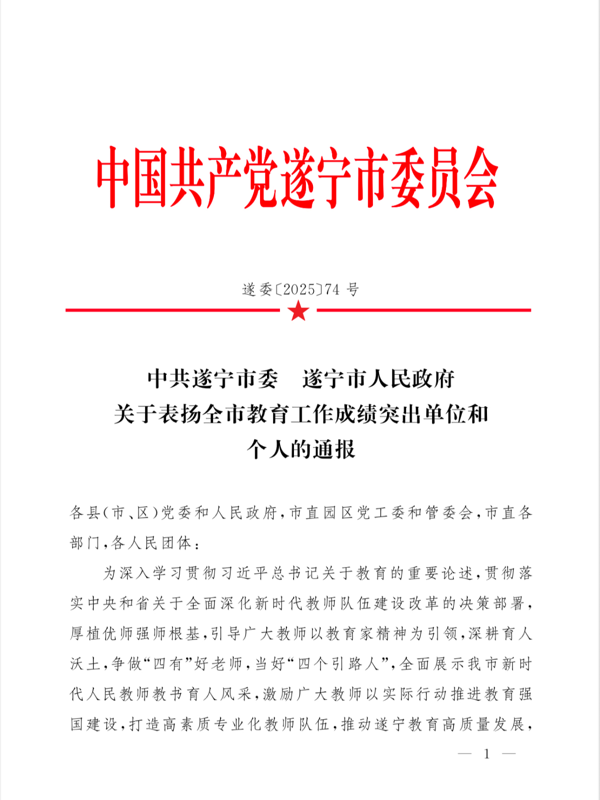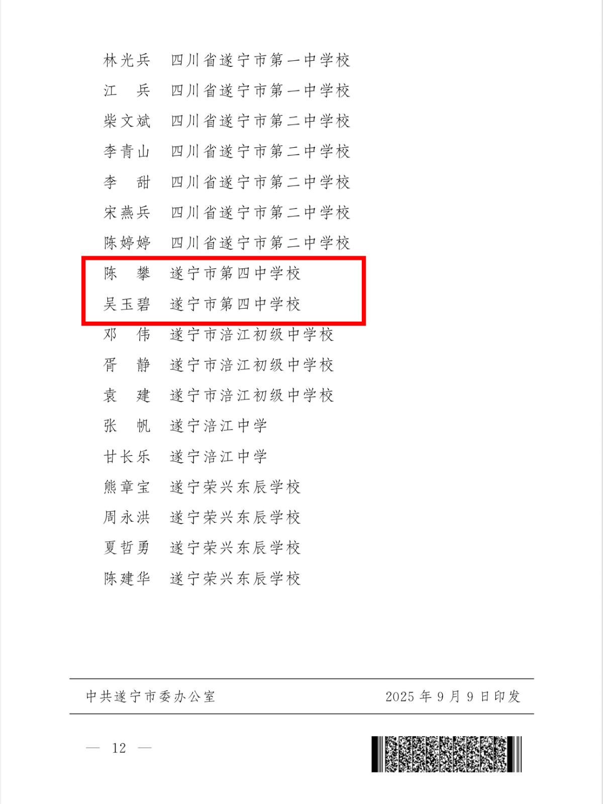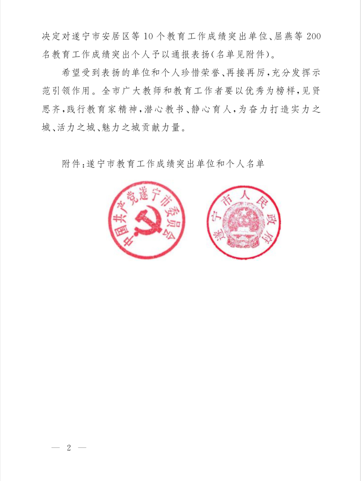 熱烈祝賀我校陳攀老師和吳玉碧老師獲中共遂寧市委、遂寧市人民政府表彰!