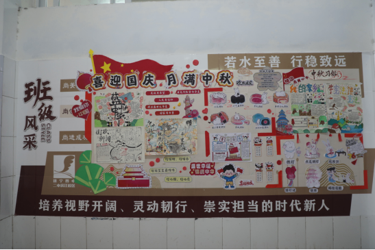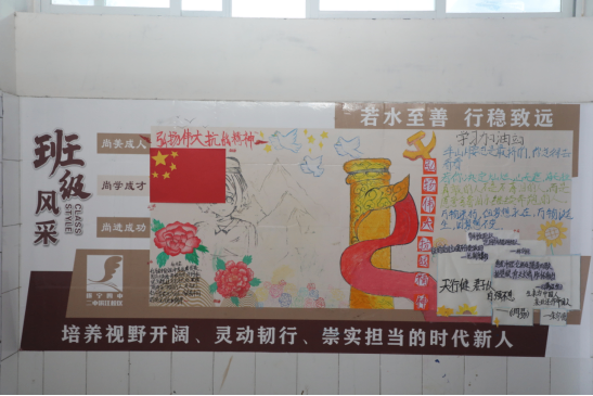 此次班級文化墻布置活動,不僅美化了校園環(huán)境,更是一次深刻的班級文化建設(shè)和愛國主義教育實踐。一墻一世界,一班一風(fēng)采。這些充滿創(chuàng)意與溫度的文化墻,已成為遂寧四中(二中濱江校區(qū))一道亮麗的風(fēng)景,激勵著全體學(xué)子在充滿文化氣息的沃土上,懷揣夢想,茁壯成長。