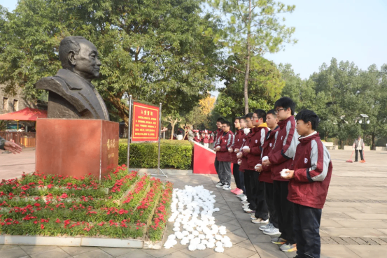 蒼松翠柏映初心,楊尚昆舊居的宣誓廣場上,氣氛莊重而肅穆。同學(xué)們身著整齊校服,手持親自做的潔白鮮花,列隊(duì)肅立在楊尚昆同志銅像前,目光堅(jiān)定而崇敬。