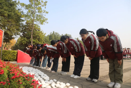 ?在帶隊(duì)老師的帶領(lǐng)下,學(xué)生代表緩步上前,小心翼翼地將鮮花敬獻(xiàn)于銅像基座,深深鞠躬,以此表達(dá)對革命先輩的深切緬懷與崇高敬意。同學(xué)們高舉右拳,莊嚴(yán)宣誓:“傳承紅色基因,勇?lián)鷷r(shí)代使命,勤奮學(xué)習(xí),報(bào)效祖國!”鏗鏘有力的誓言穿透云霄,既是對革命先輩的深情告慰,更是新時(shí)代少年接力奮斗的堅(jiān)定承諾。獻(xiàn)花儀式雖短,卻讓紅色精神深深烙印在同學(xué)們心中,成為激勵(lì)大家砥礪前行的精神力量。