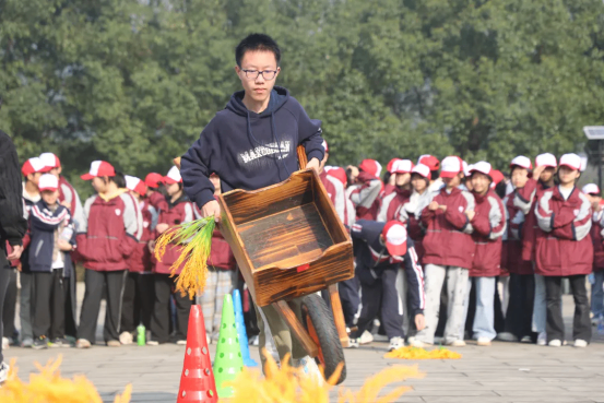 ????參觀結(jié)束后,“趣味運(yùn)水稻”游戲熱鬧開場!同學(xué)們分組接力,小心翼翼地用特制工具運(yùn)送“水稻”(模擬道具),既要保證“水稻”不落地,又要比拼速度與協(xié)作。“S”路線上,大家彎腰疾行、默契配合,時(shí)而為隊(duì)友加油吶喊,時(shí)而為順利傳遞歡呼雀躍。這場充滿趣味的游戲,不僅讓同學(xué)們體驗(yàn)了農(nóng)耕勞作的不易,更在協(xié)作中感受到團(tuán)隊(duì)力量的珍貴。