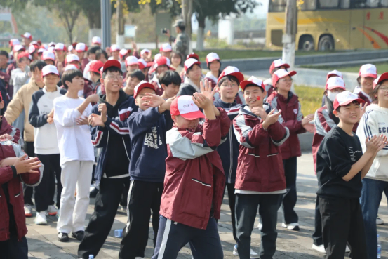 午飯后,學(xué)生走進(jìn)潼南農(nóng)科園,清新的田園氣息撲面而來。在正式參觀前,一場活力滿滿的熱身體操拉開了實(shí)踐序幕——同學(xué)們跟著老師的節(jié)奏,伸展肢體、活動(dòng)關(guān)節(jié),歡快的節(jié)拍中,臉上洋溢著期待的笑容,瞬間驅(qū)散了午時(shí)的疲憊。