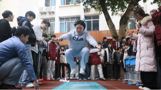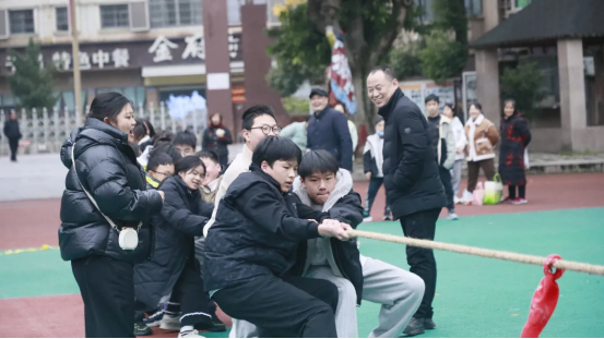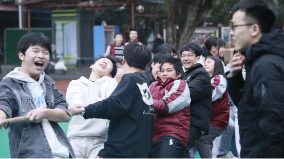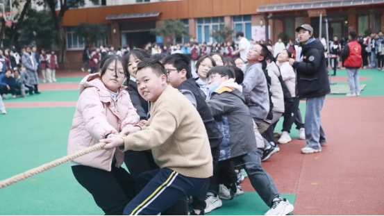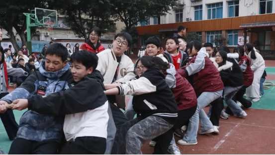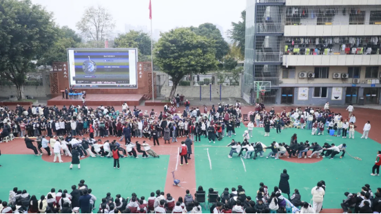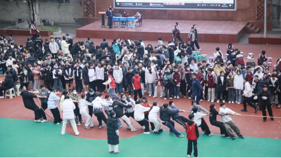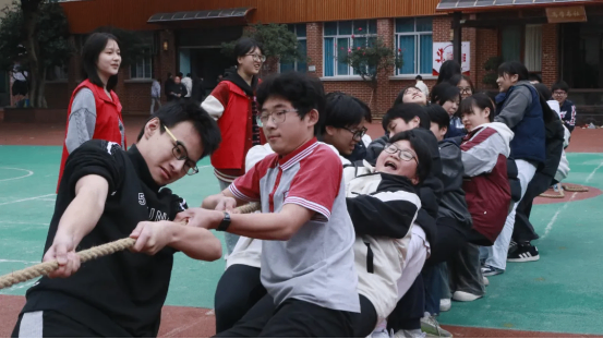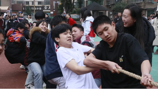 拔河比賽中,各班運(yùn)動(dòng)員緊握長繩,團(tuán)結(jié)一心,寸土必爭,場邊的加油聲此起彼伏,展現(xiàn)了無與倫比的班級(jí)凝聚力。