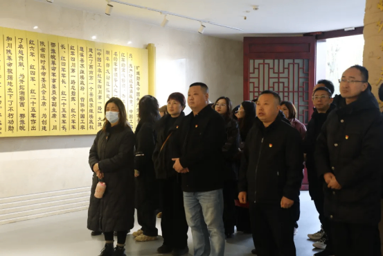 活動(dòng)伊始,全體人員懷著肅穆的心情來到曠繼勛紀(jì)念館。踏入館內(nèi),一幅幅歷史圖片、一件件珍貴文物、一段段動(dòng)人故事,生動(dòng)再現(xiàn)了曠繼勛烈士英勇革命的一生和蓬溪起義的光輝歷程。在講解員的細(xì)致引導(dǎo)下,大家深入了解了曠繼勛烈士“為黨為民、矢志不渝”的革命歷程,被他在遂寧蓬溪發(fā)動(dòng)武裝起義、建立四川最早蘇維埃政權(quán)的壯舉所動(dòng)容。