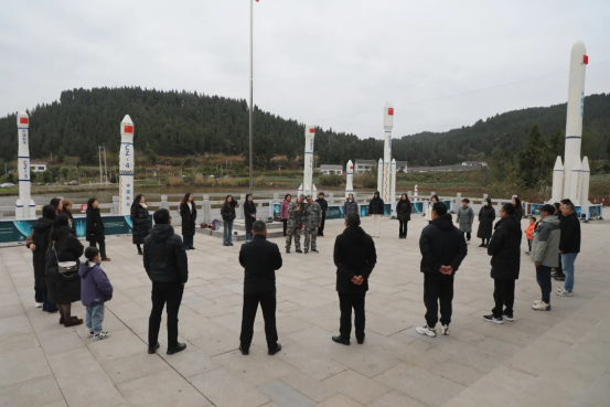 參觀結(jié)束后,全體教師整齊列隊(duì),在紀(jì)念館前的廣場(chǎng)上肅立,緬懷革命先烈。